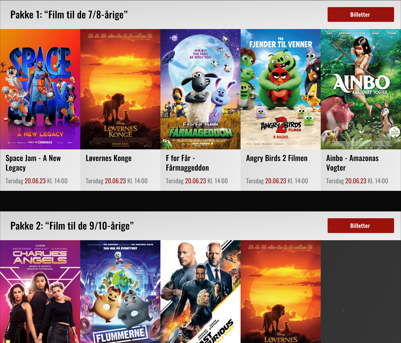 Vi præsenterer en række Skolebio-pakker som er tilpasset forskellige alderstrin. Der er forskel på hvor mange film, der er i pakkerne. Visningstidspunkt er nævnt på de enkelte pakker. Vi glæder os til at se jer.